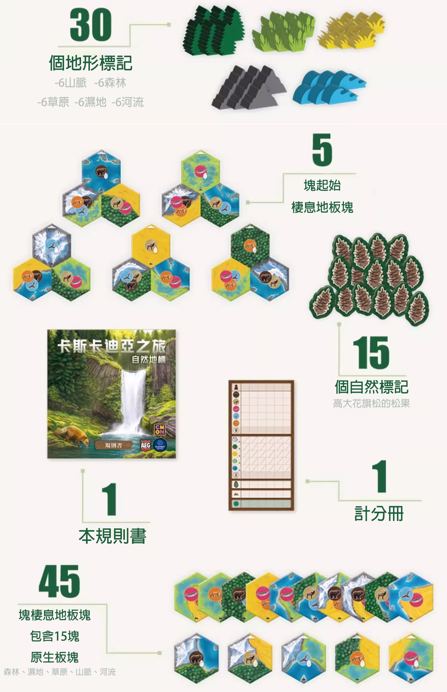 和野生動物為特色,而這款擴充豐富了基礎遊戲裡板塊放置和標記抽取的元素。